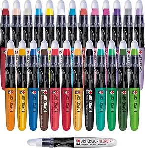 These crayons are so versatile, you can use them wet or dry. You can also use acrylic paints on top of them. Create professional works of art with our multi-purpose wax pastels that work with rich, textural solids, blended finished pieces, stamped colors for beautiful backgrounds, and watery-transparent effects. Use all of the techniques with stencils for fine art, mixed media, and casual drawing on gesso, canvas, fabric, paper, wood, and more.