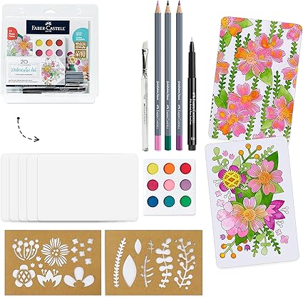 This powerful watercolor set has it all. So many beautiful color shades for any painting you are working on, 48 vibrant, assorted watercolor cakes. It's portable and has a brush that holds water in its handle for easy on the go art ideas. The plastic palette makes for easy clean up and mixing colors. I love working with watercolors because it's okay if the paint dries up, I can always refresh it with water.